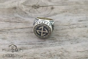 The ring "Bless and Save" made of silver for men is made with inserts - Tiger's eye stones.