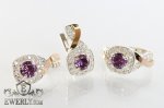 Серебряные серёжки и кольцо из серебра 925 пробы с золотыми вставками 375 пробы и камнями - фианитами (цвет-аметист) для девушки.