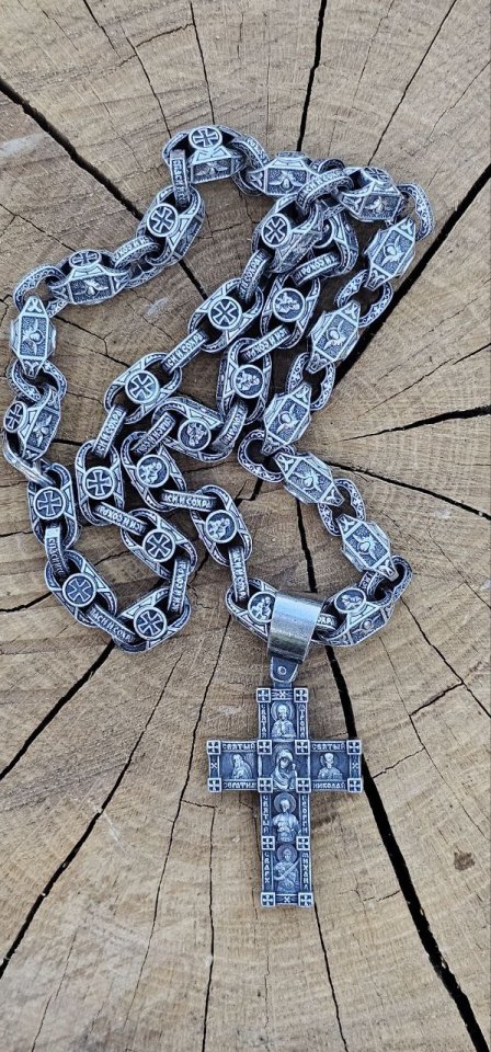 Серебряная якорная цепь с православным крестом, как у Александра Усика