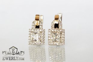 Серебряные серьги с золотыми вставками и чёрными фианитами