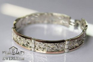 Женский браслет из серебра с золотом и голубыми камнями