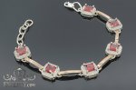 Полновесный браслет. Женский серебряный браслет со вставками золота и камнями (красными фианитами).