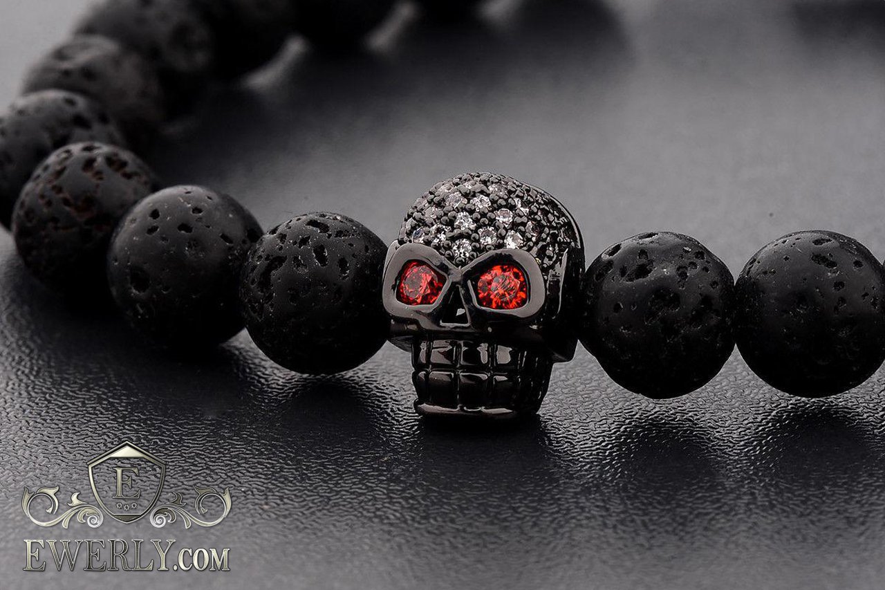 Мужской браслет чёрный из камня - Вулканит 123018AD