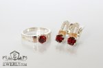 Женские серебряные серьги и кольцом с золотом и камнями цвета-гранат