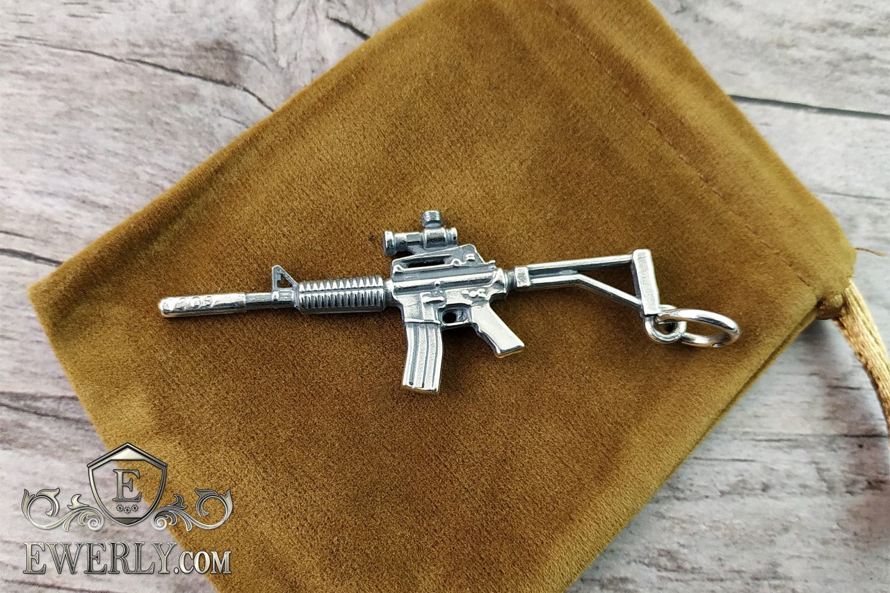 На фото показана серебряная подвеска - кулон "Автомат М16" с чернением.