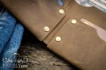 Полностью выполнен из натуральной кожи и металлических заклепок. Эксклюзивное изделие ручной работы, имеет эффект потёртости и лёгкой небрежности и изображением штурвала-компаса с надписью "WANDERLUST", что на русский переводится как "Cтрасть к путешествиям". Рисунок нанесён на кожу с помощью лазера (лазерная гравировка). Изготовлен в ограниченном выпуске.
