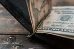 Мужской кожаный зажим для бумажных денег - изделие полностью ручной работы, изготовлен из натуральной кожи чёрного цвета. Имеет три раздела, два внешних из них для банковских карт или визиток и одно внутреннее отделение для купюр всех номиналов, в том числе самых крупных.