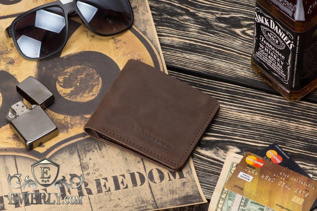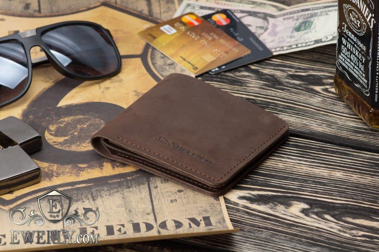 Мужской кожаный кошелек ручной работы коричневый 11007EI