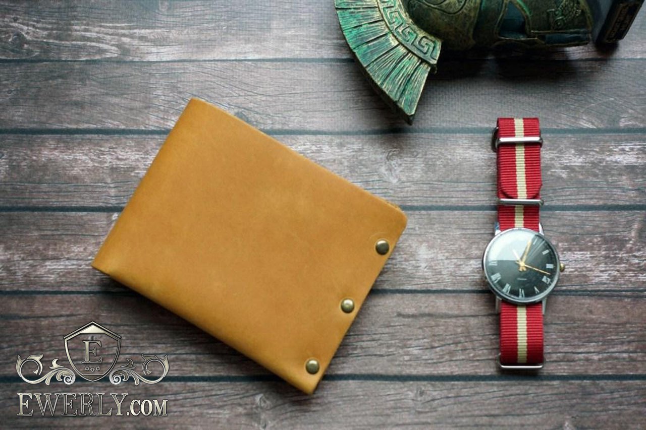 Ручная работа из натуральной кожи янтарного (рыжего) цвета и заклепок из металла.