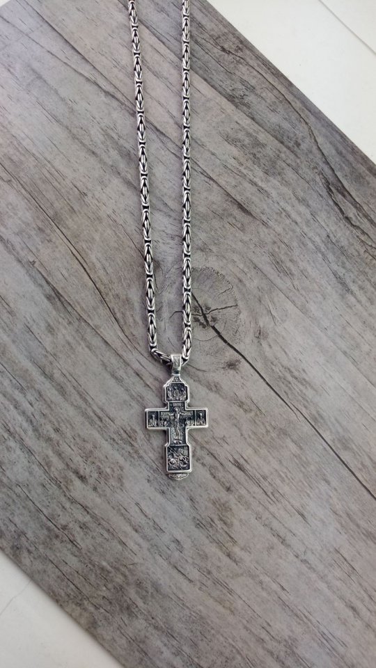 Большой нательный серебряный крест с чернением