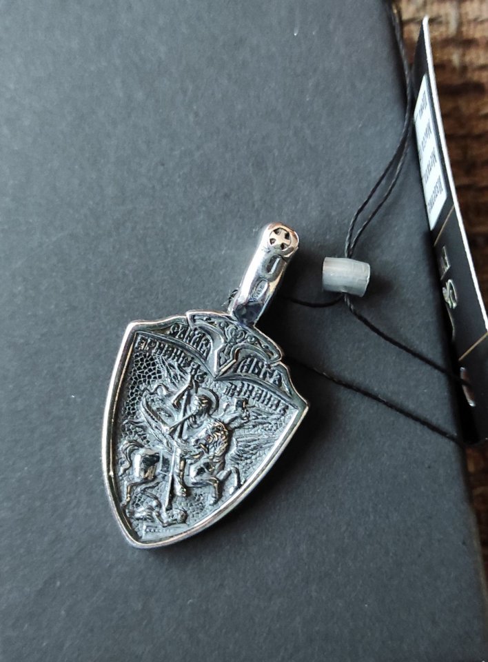 Серебряная подвеска - щит с Архангелом Михаилом, данная ладанка изготовлена из серебра с чернением.