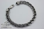 Полновесный браслет. «Луна» - красивое название и такое же красивое плетение в исполненном серебряном браслете с чернением. Браслет «Луна» можно по достоинству обозначить и мужским, и женским одновременно. И это благодаря своему "универсальному" узору чем-то подобных двум Месяцам (неполных Лун) на каждом звене, как будто снятых с ночного неба.